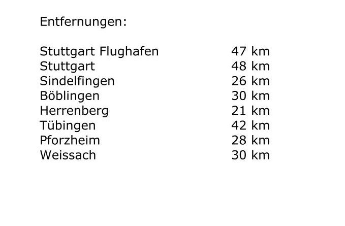 Die Städte Sindelfingen, Böblingen, Leonberg, Renningen, Weissach, Weil der Stadt, Herrenberg sind gut und schnell erreichbar. Zusätzlich besteht schon bald Anschluss an das Stuttgarter S-Bahnnetz: www.hermann-hesse-bahn.de. Den Bahnhof erreichen Sie zu Fuß in ca. 8 Minuten.