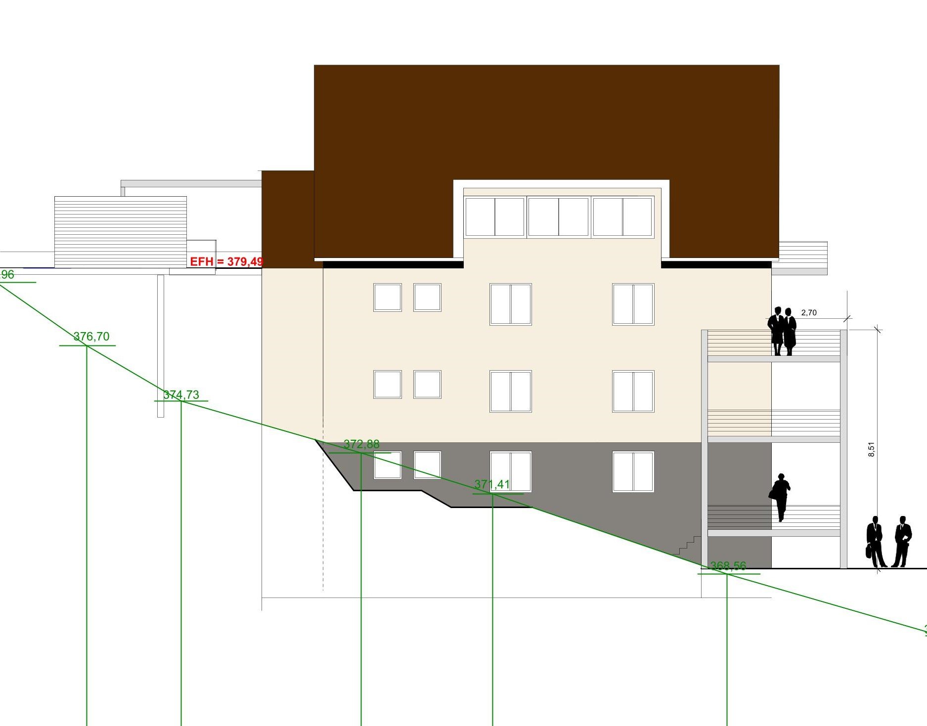 Das Gebäude wird in Massivbauweise errichtet und über eine umweltschonende und ressourcensparende Luft-Wärmepumpe versorgt, gekoppelt mit einer Photovoltaikanlage mit Speicher.