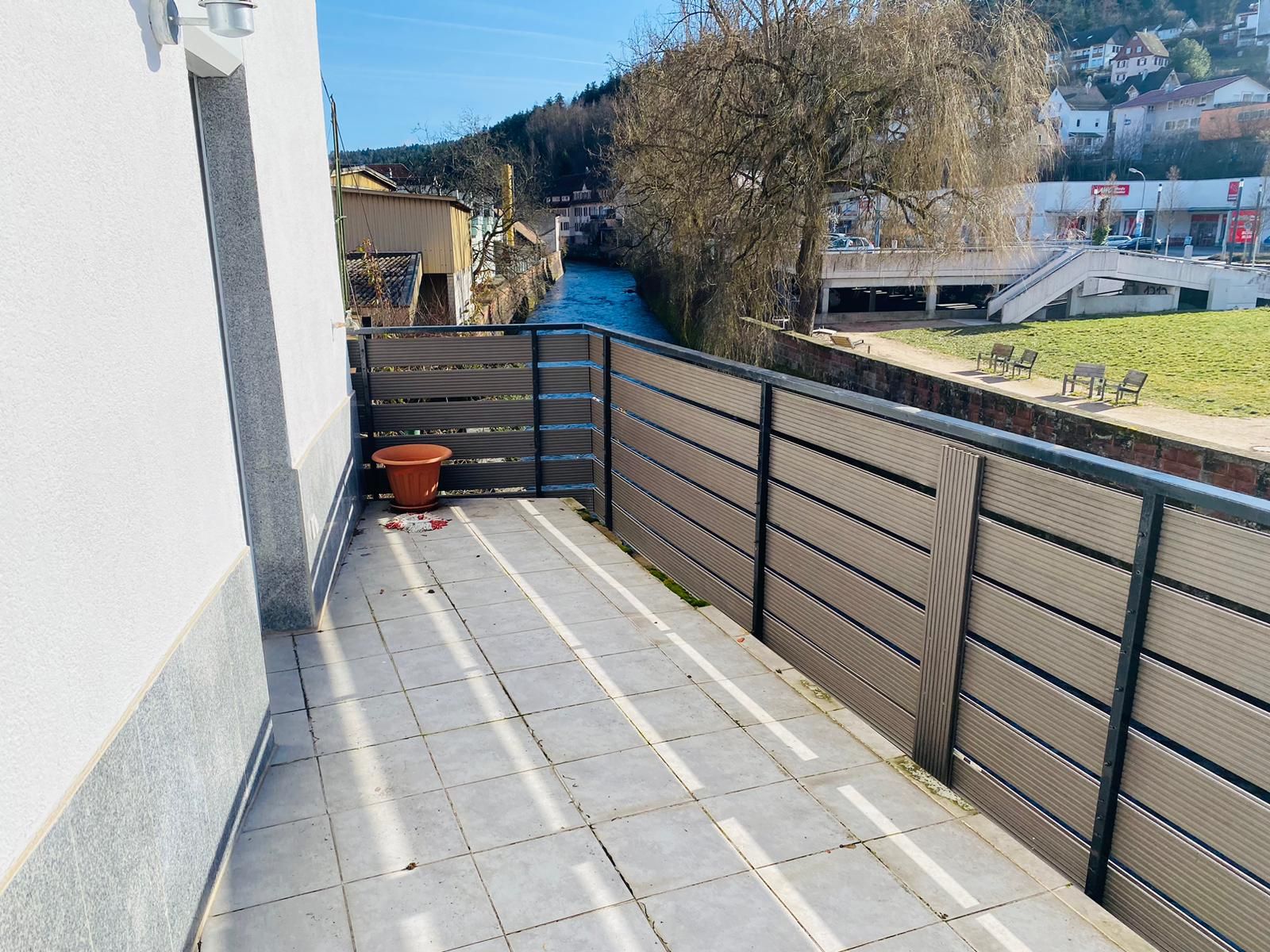 Im 1. Obergeschoss befindet sich eine 3-Zimmerwohnung mit mit großer, sonniger Terrasse direkt zur Nagold.